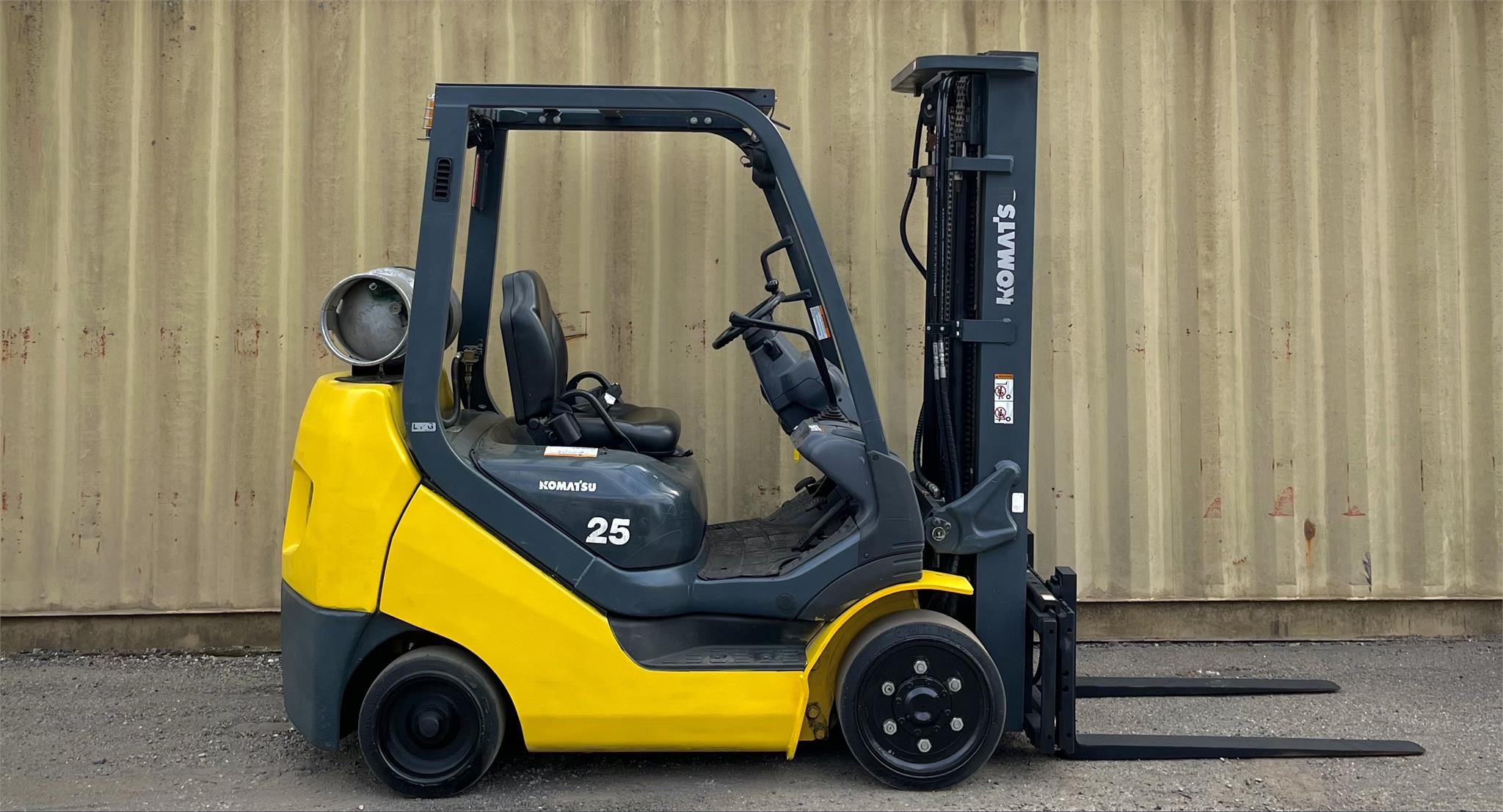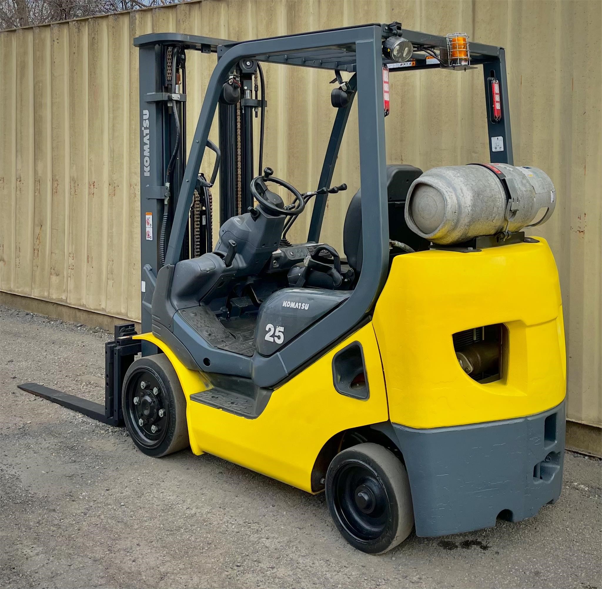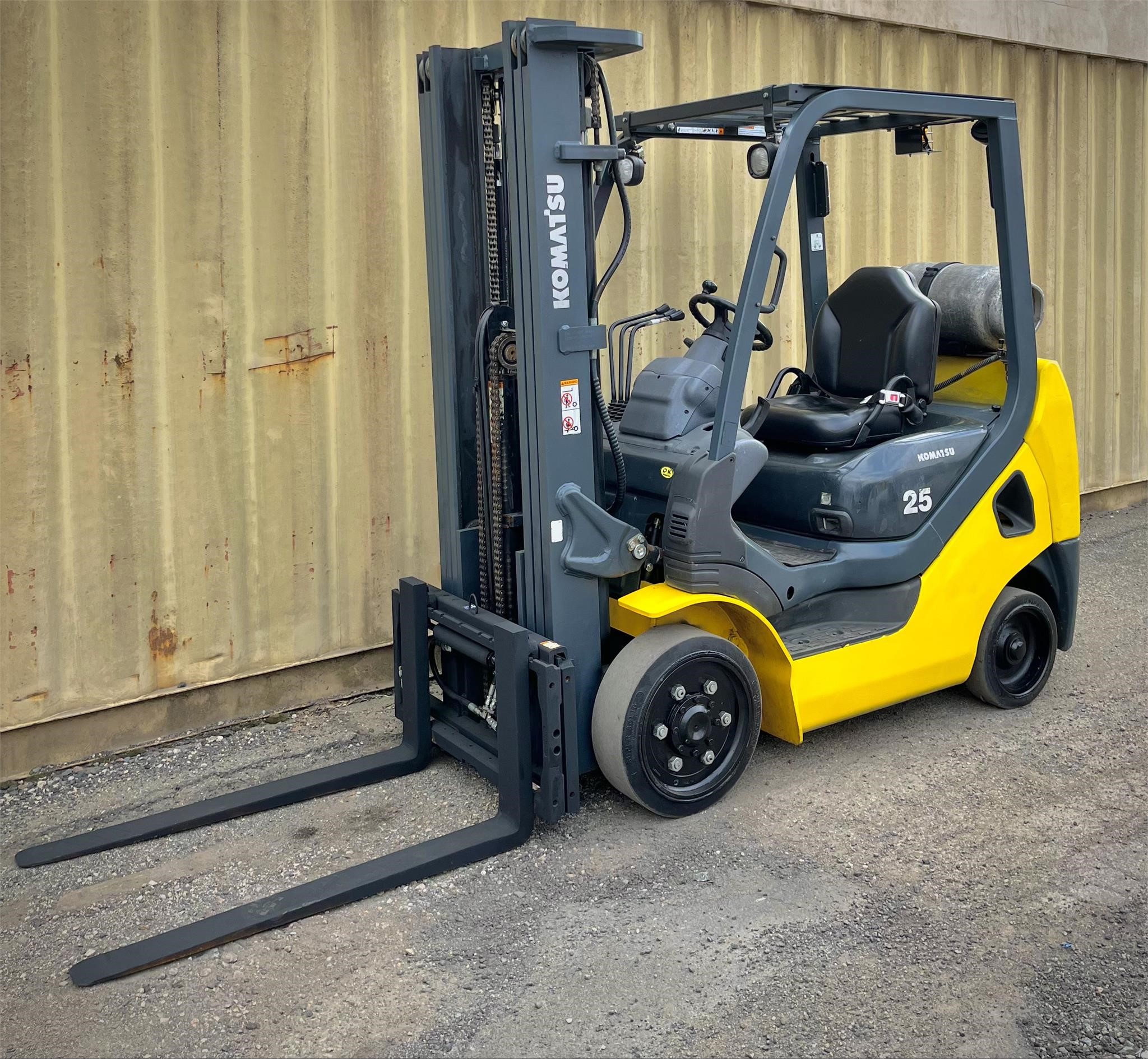 Year: 2014 Manufacturer: KOMATSU Model: AFG25T-16 Load Capacity: 5000 Maximum Lift Height: 186 Side Shift: Yes Mast Type: Triplex Hours: 10843 Serial Number: A451136 Power Type: LPG Stock Number: 10 * Propane bottle not included in sale *