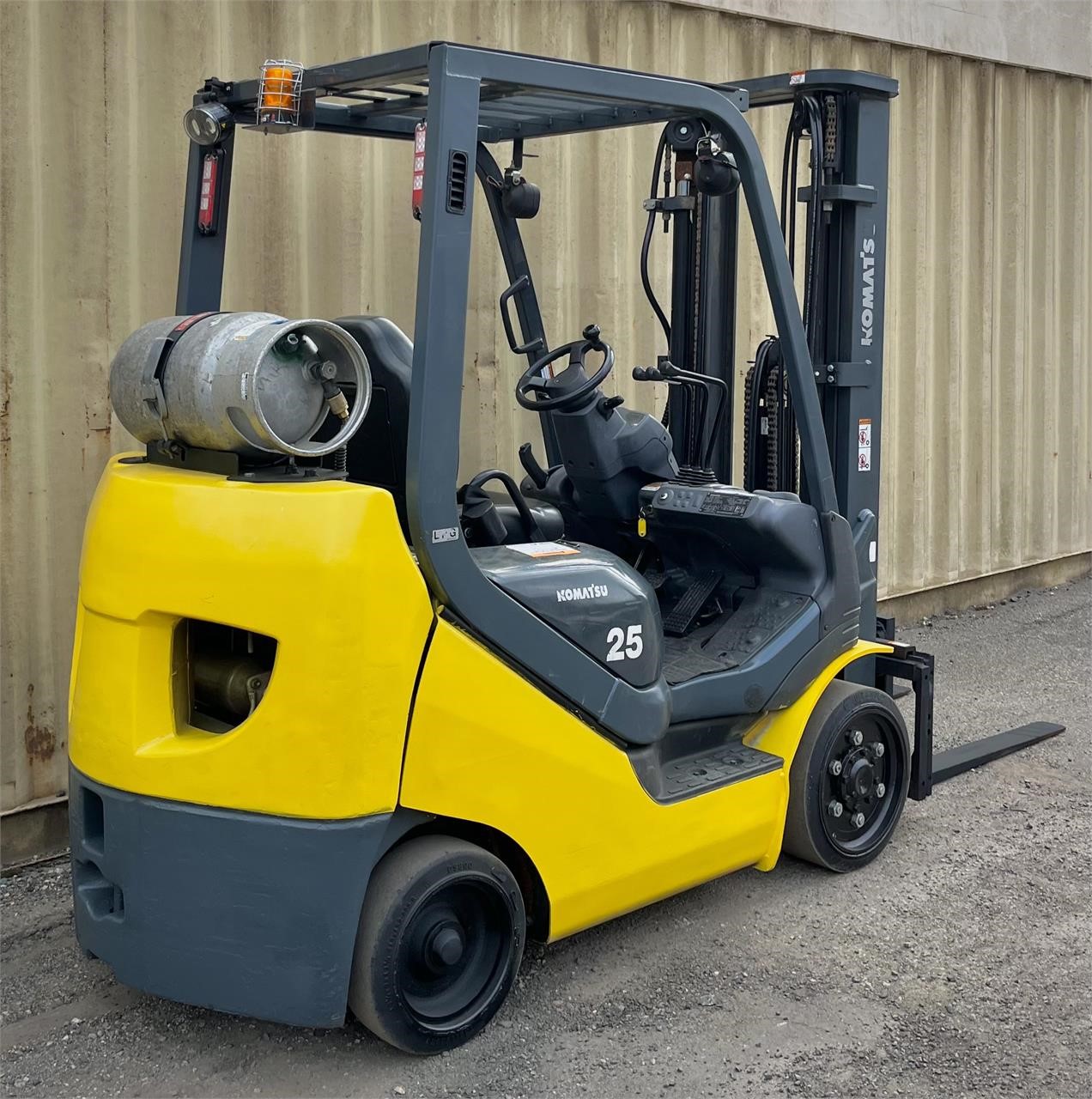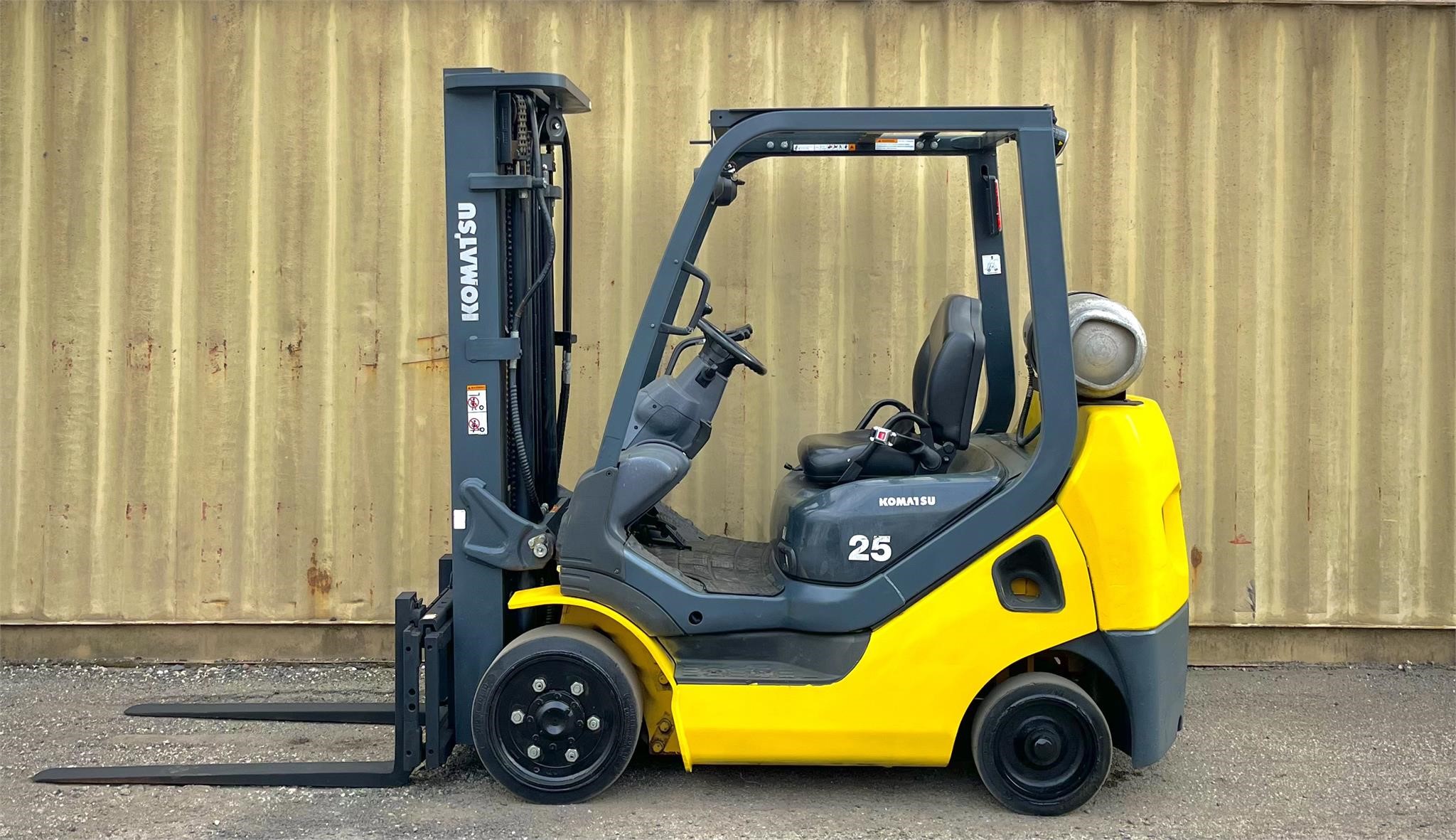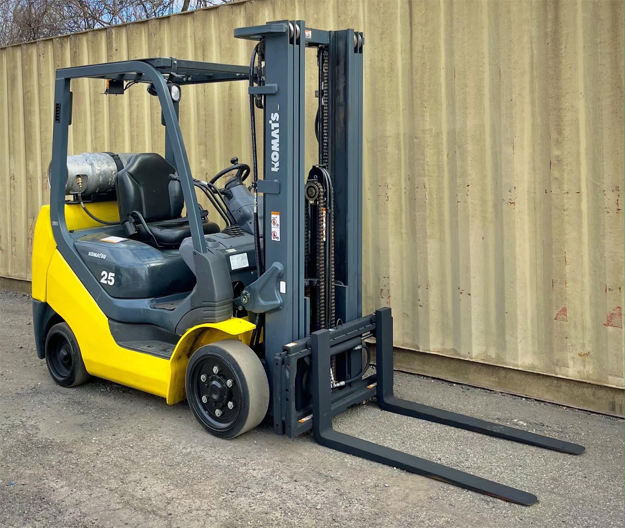 Year: 2014 Manufacturer: KOMATSU Model: AFG25T-16 Load Capacity: 5000 Maximum Lift Height: 186 Side Shift: Yes Mast Type: Triplex Hours: 10843 Serial Number: A451136 Power Type: LPG Stock Number: 10 * Propane bottle not included in sale *